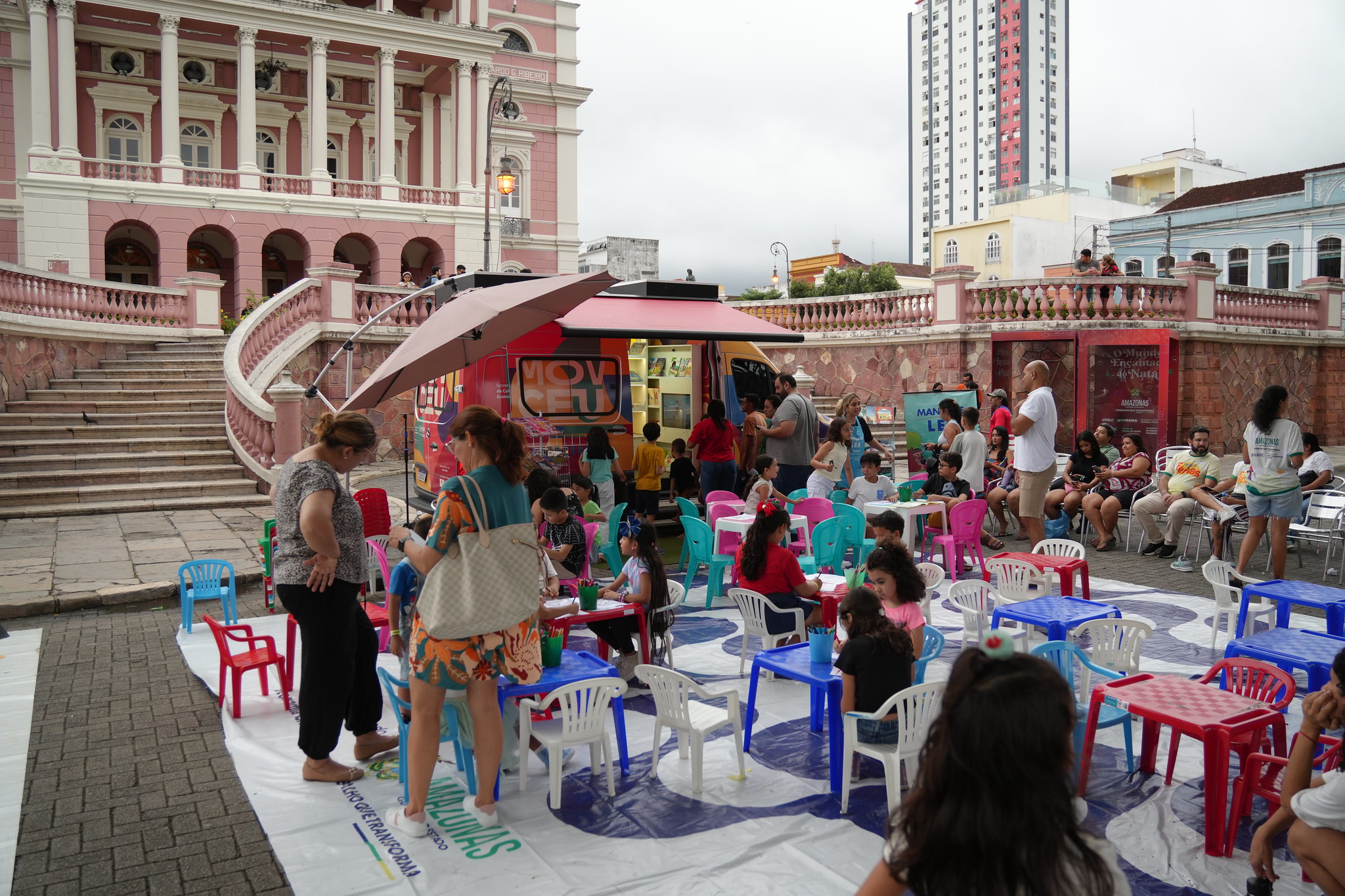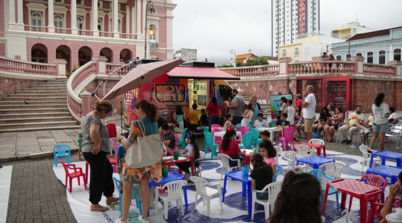 A programação teve início com uma visita guiada ao Teatro Amazonas, seguida de uma passagem pela Galeria do Largo, onde o público conferiu a exposição comemorativa pelos 20 anos do espaço. As atividades foram pensadas para aproximar as crianças dos patrimônios culturais e das artes visuais de forma lúdica e acessível.
