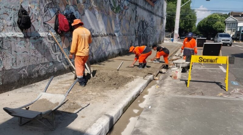A Prefeitura de Manaus, por meio da Secretaria Municipal de Infraestrutura (Seminf), realiza a revitalização do passeio público da avenida Ramos Ferreira, no Centro, zona Sul da cidade. A intervenção, iniciada nesta terça-feira, 14/10, abrange cerca de 100 metros de calçada em concreto, devolvendo segurança, mobilidade e acessibilidade a quem circula pela região.